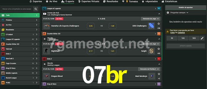 O 07br oferece uma grande seleção de opções de apostas em e-sports com probabilidades competitivas